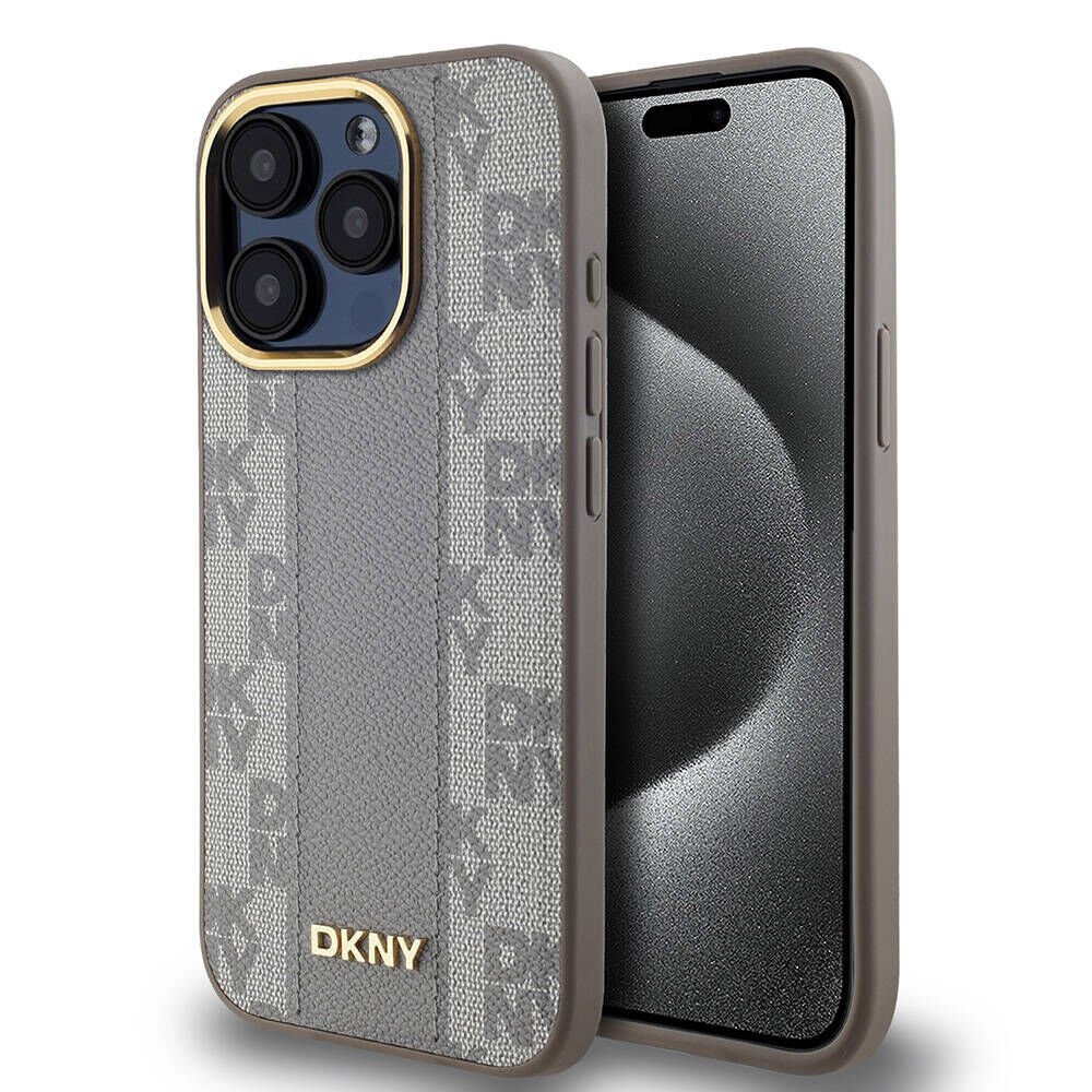 Apple iPhone 15 Pro Max Kılıf DKNY Orjinal Lisanslı Magsafe Şarj Özellikli 3D Yazılı Checkered Pattern Kapak